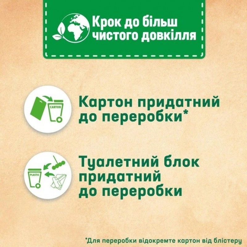 Tətbiq üsulu Tualet blokunu tualetinizin kənarına qoyun, su axınına uyğun olaraq tənzimləyin, toplar boş olduqda dəyişdirin Paketdəki miqdar, əd. 4 Tərkibi 15-30% anion səthi aktiv maddələr, <5% qeyri-ion səthi aktiv maddələr, kompleksləşdirici, ətirlər: Geraniol, citronolye, solventli su Karton İstifadə müddəti 3 il İstehsalçı Henkel Qablaşdırma ölçüləri 4,1 x 16,5 x 26,5 sm Brend qeydiyyatı ölkəsi Almaniya Məhsulun mənşə ölkəsi Serbiya Macarıstan