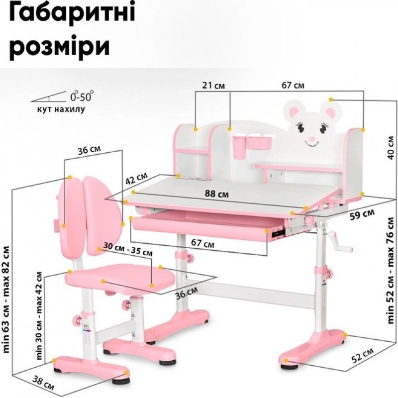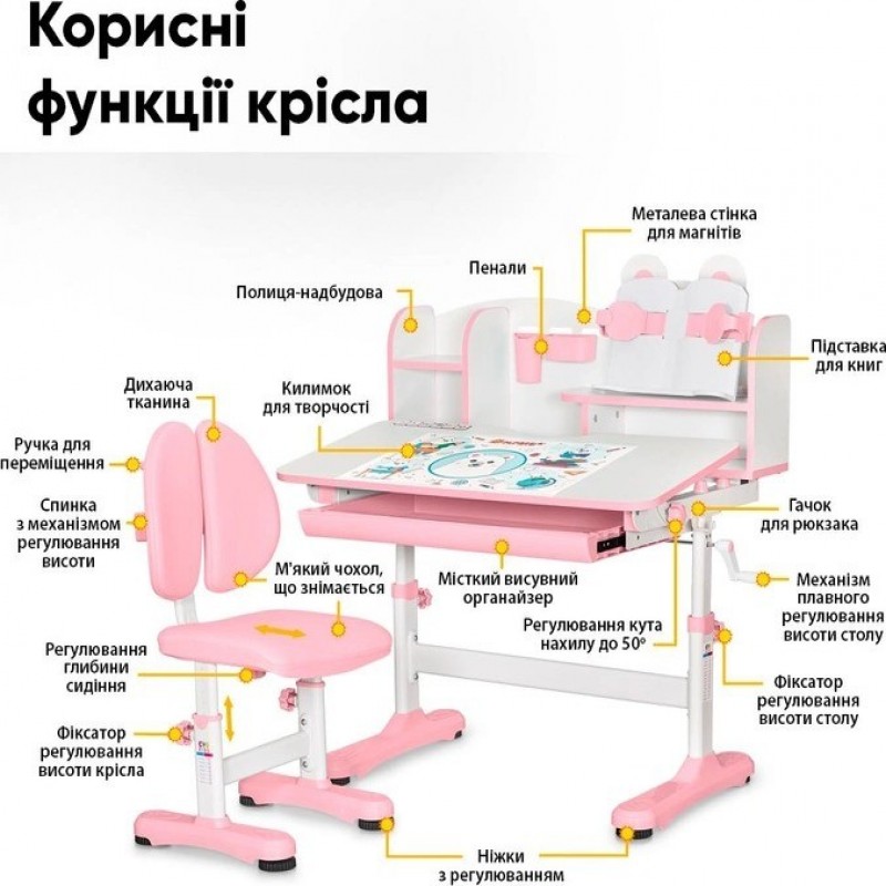 Evo-Kids BD-29 Panda XL Mebel Dəsti Masa + Kreslo + Rəf Çəhrayı (BD-29 PN)
