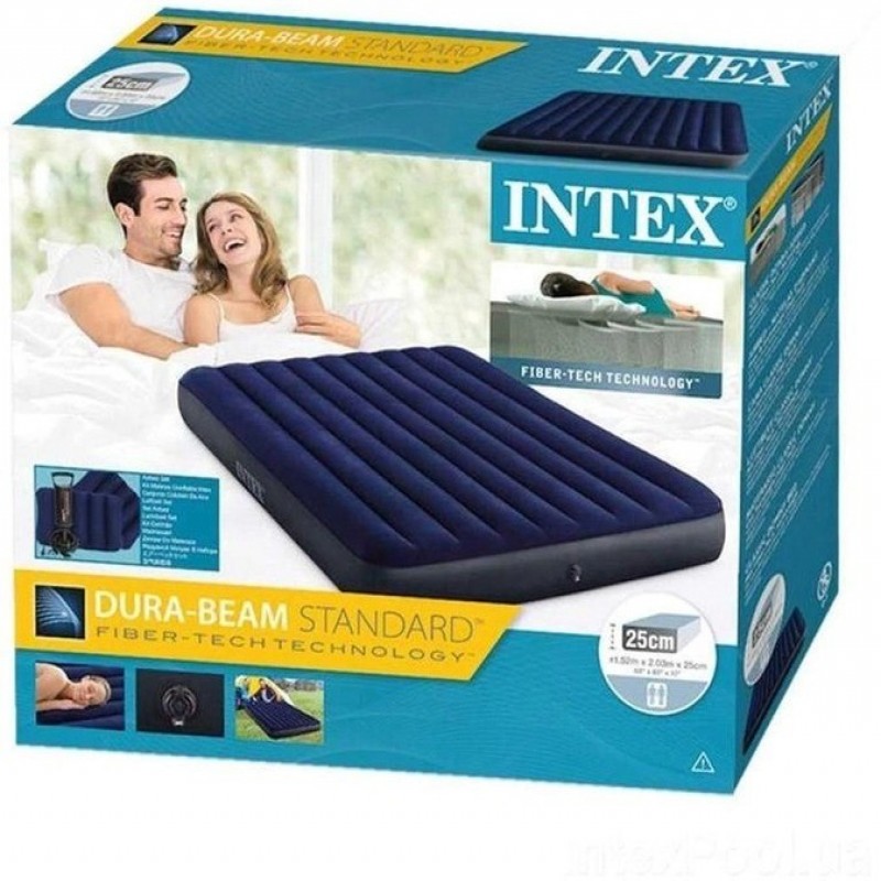 Intex 64765 məxmər döşək yastıqlı və nasos klapanlı 2-də 1 152x203x25 sm Mavi