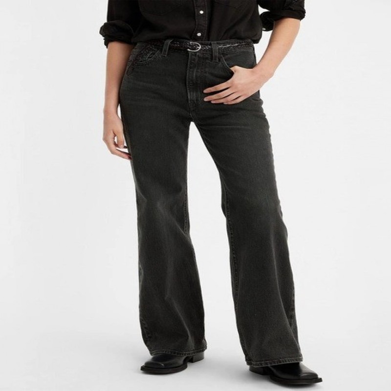 Qadın Flare Cins şalvar Levi's Ribcage Bells A7503-0007 30-34 Qara (5401128678266)