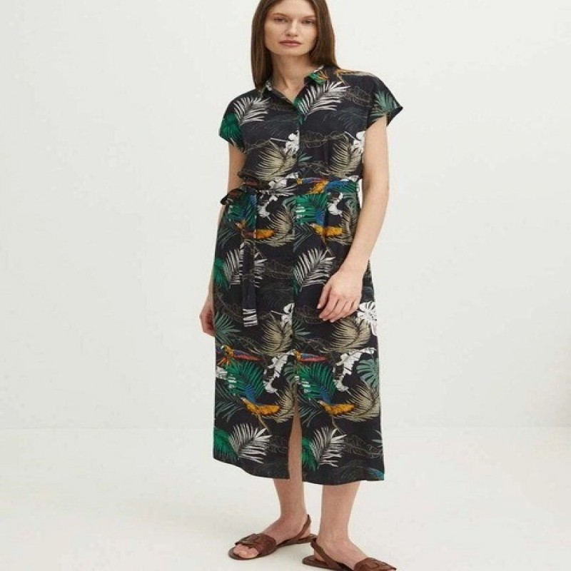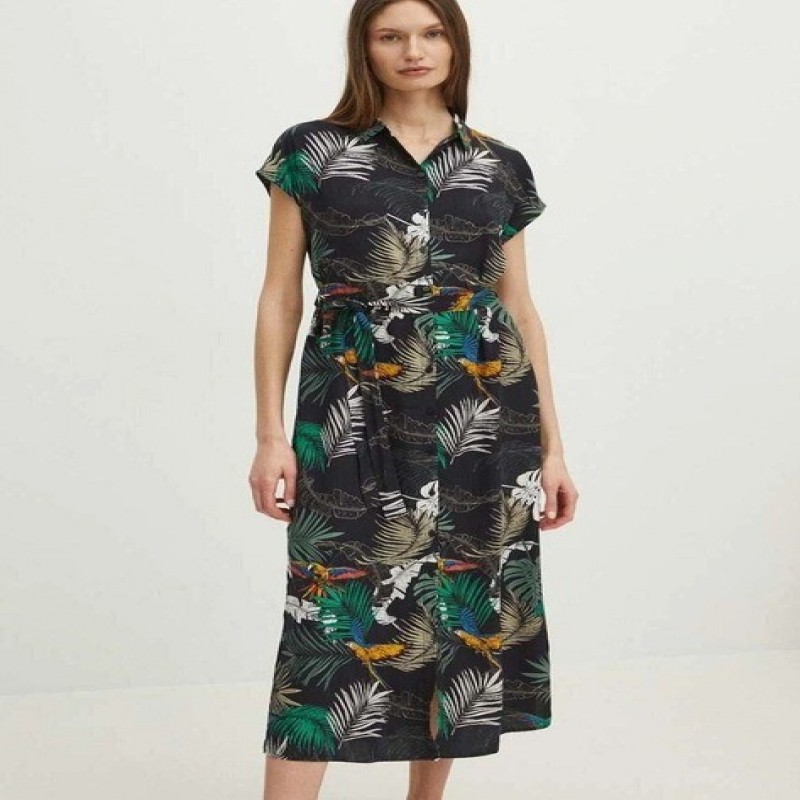 Medicine RS24SUD071-99B XS Qara rəngli, yaylıq midi qadın köynək-don (5905264317510)