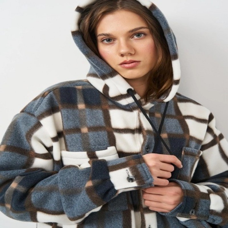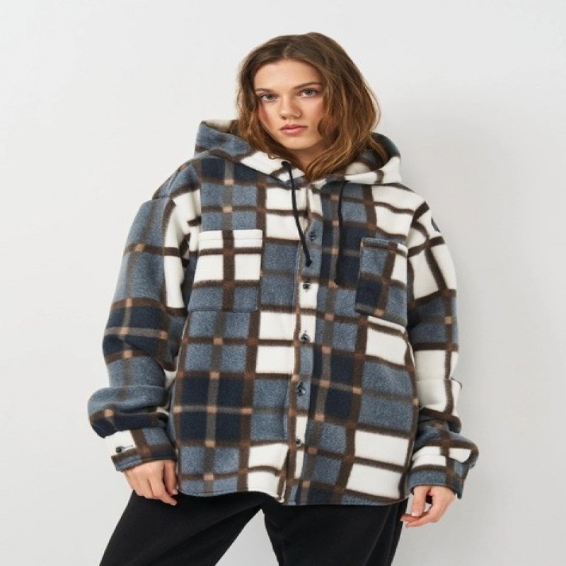 Olis-Style Roni 52 Ölçülü, boz rəngli, dama-dama naxışlı, oversize qadın isti köynəyi (ROZ6501002771 ₽790.0 |