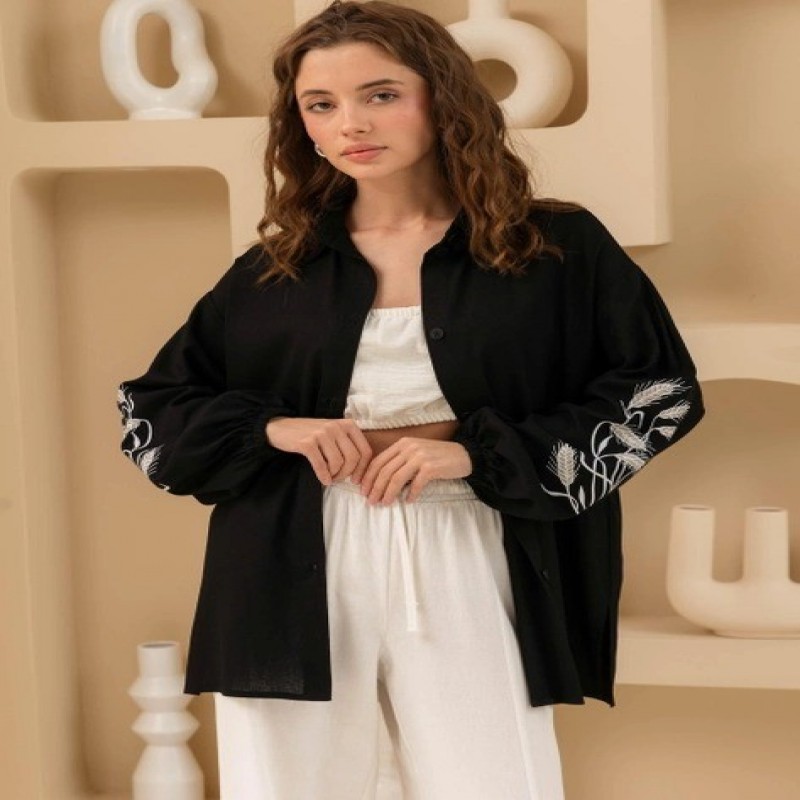 Seventeen 2154.5746 L-XL Qara oversize qadın pambıq köynəyi (Sev2000000189475)