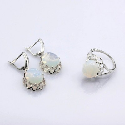 Bu zərif dəst — 925 əyarlı gümüşdən hazırlanmış üzük və sırğalar — ay daşının sehrli parıltısını daşıyır. Təbii daşın hər parıltısı sanki səmada batan bir ulduzun xatirəsidir.