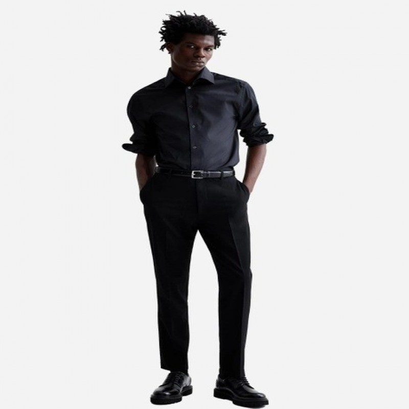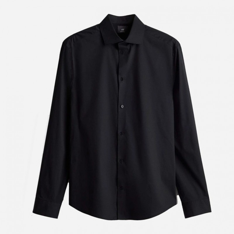 H&M 270841808 M Qara kişi pambıq köynəyi (2727000002459)